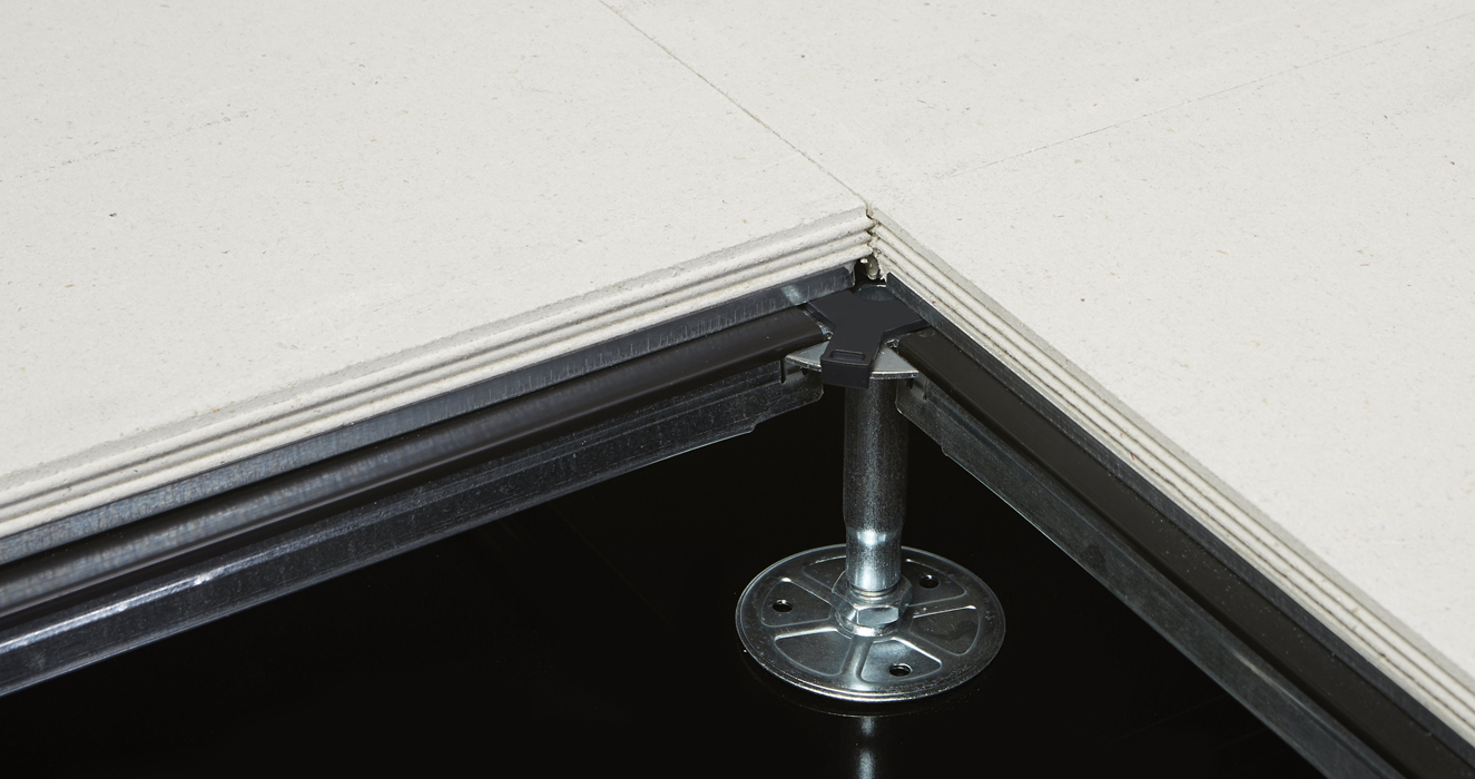 Hævet gulv til fleksibel fremføring af kabler, rørføringer og andre installationsopgaver.