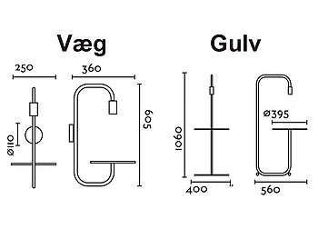 Gulv- eller væglampe til LED lyskilde og med påmonteret aflægningsplads